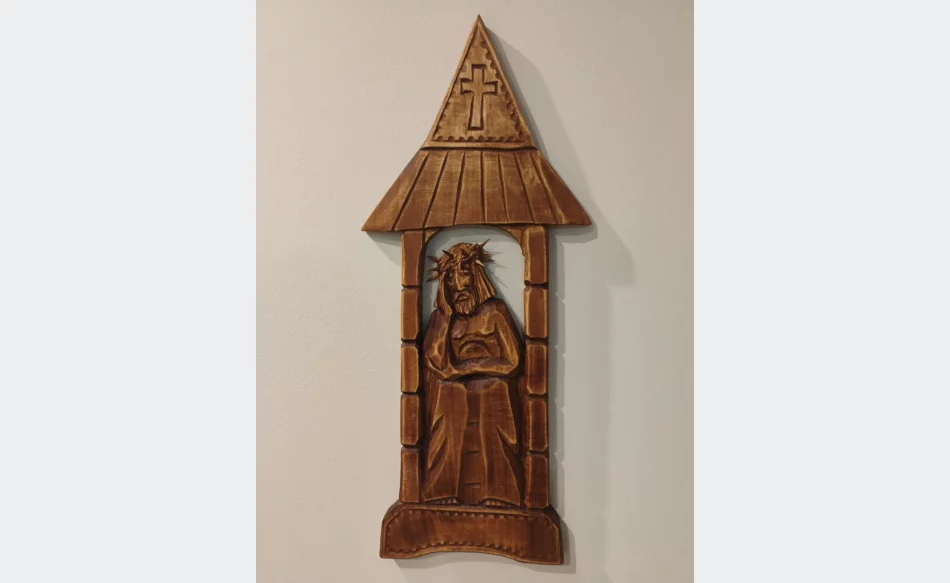 Oryginalna płaskorzeźba z motywem Chrystusa Frasobliwego (48x20cm) wykonana przez artystę rzeźbiarza.